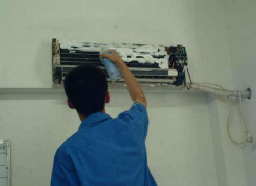 | 赤峰市空调维修师傅给赤峰市用户上门维修清洗空调。 |